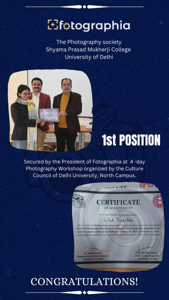 Welcome to "Fotographia"- The Photography Society of Shyama Prasad Mukherji College, University of Delhi.